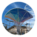 濰坊皓麗膜結構工程有限公司是專業從事膜結構工程的設計、制作、安裝、維護于一體的企業,膜結構建筑風格獨特,藝術性強,具有濃厚的現代氣息,廣泛應用于體育場館、高速公路收費站、加油站、大型停車場、博覽會展廳、公共場所、休閑場所、景區裝飾等。